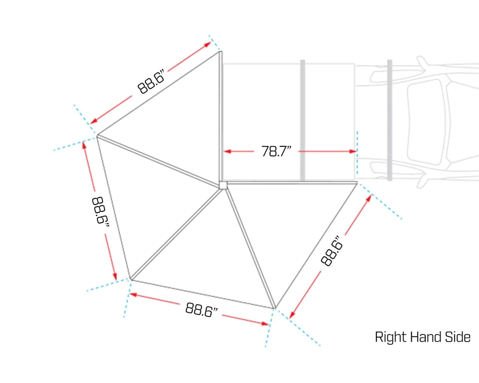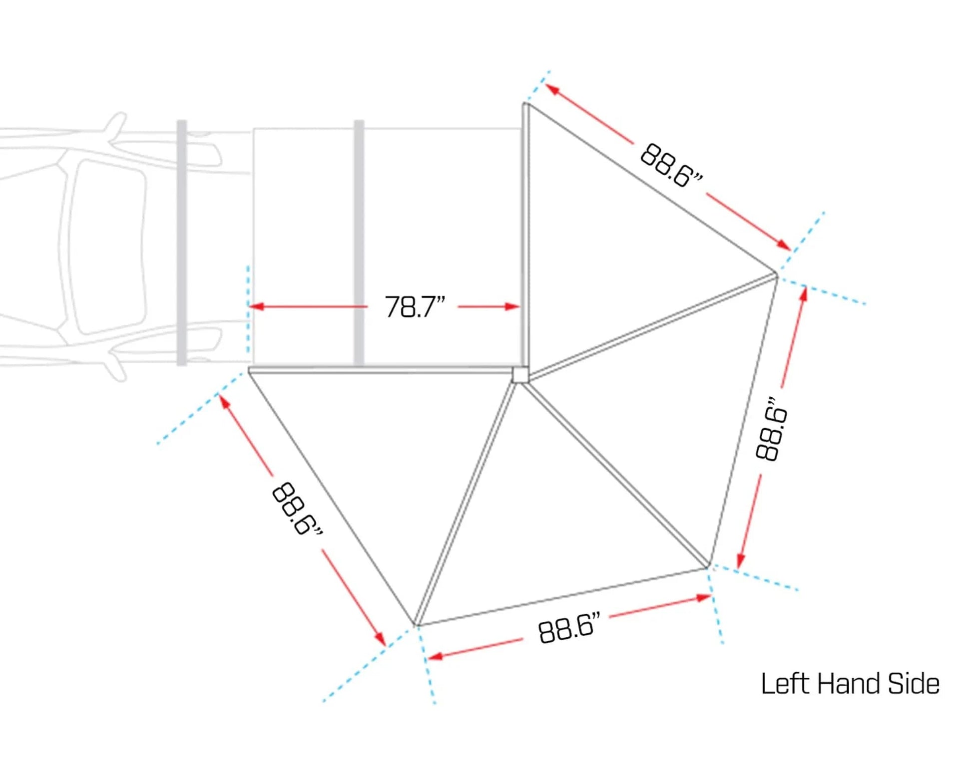 The DeltaWing 270° Freestanding Awning delivers instant, full-wraparound coverage with up to 72 ft² of UV-blocking blackout shade—ideal for off-road rigs, SUVs, and overlanding setups. Its freestanding design and heavy-duty aluminum frame allow for a quick, one-person setup in under 3 minutes, while removable support poles and a rain pole help manage wind and water runoff. Integrated dimmable LED lights with magnetic USB-powered cables provide convenient nighttime visibility, and included storage pockets, guy ropes, and a carry bag make setup and takedown fast and organized.