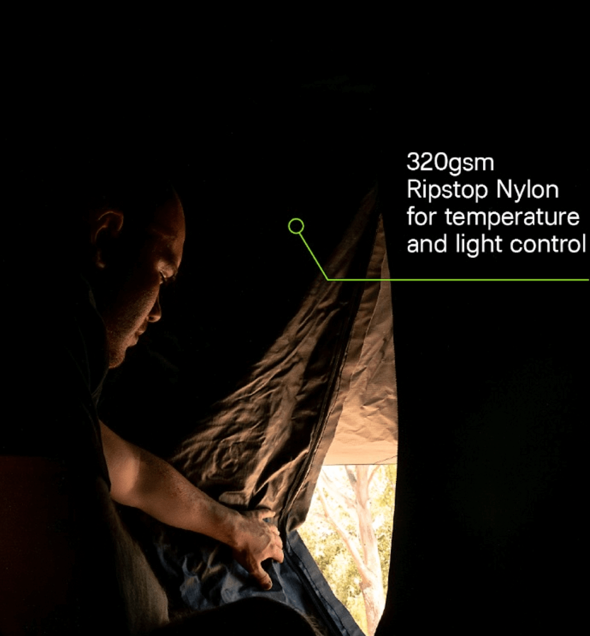 • 320gsm blackout ripstop fabric for heat control and privacy